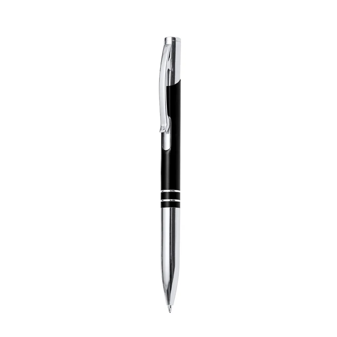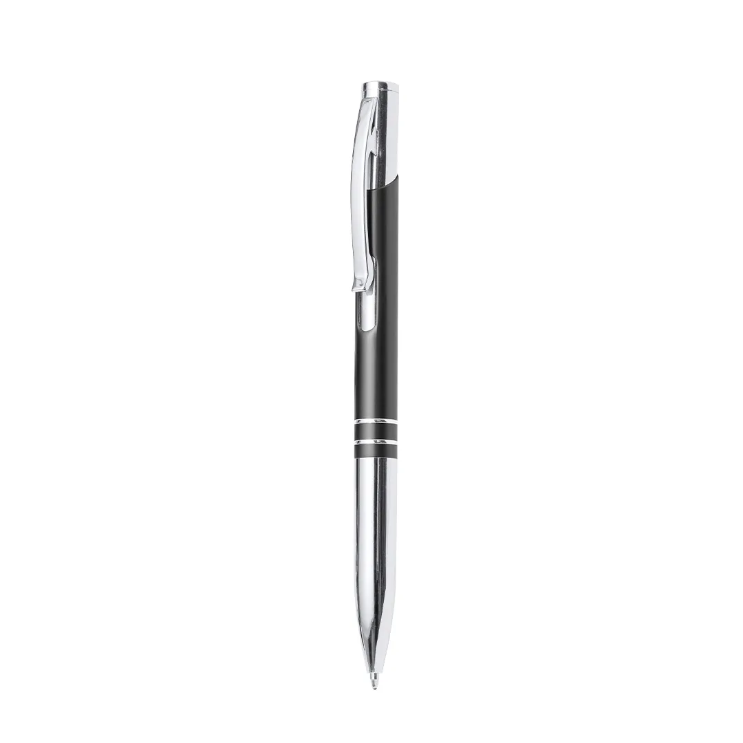 Original esferográfica com mecanismo pulsador, num elegante design bicolor. Corpo em alumínio recortado com acabamento liso numa variedade de cores. Clip, anéis e ponta originais em prateado. Em tinta azul.Alumínio