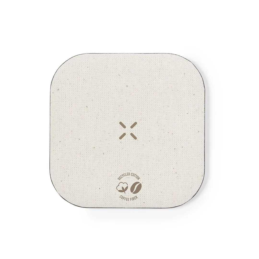 Carregador sem fios em fibra de café e algodão reciclado. Base anti-deslizante e compatível com dispositivos equipados con tecnologia de carga Qi. Capacidade de carga de 15W, com cabo preto Tipo C incluído. Com distintivos de fibra de café e algodão reciclado. Apresentado em atrativa caixa de design kraft, com manual de instrucões em espanhol e inglês.A fibra de café é uma solução circular que se obtém da utilização de resíduos produzidos na obtenção do café. Uma alternativa sustentável que favorece a redução do uso de plásticos, poupando energia no seu processo de fabricação e contribuindo para o cuidado do meio ambiente. Disponível certificação GRS (Global Recycled Standard / Standard de Reciclagem Global), que garante a origem reciclada do material usado para fabricar o produto.Fibra de Café/ ABS/ Algodão RecicladoSem fios 15W