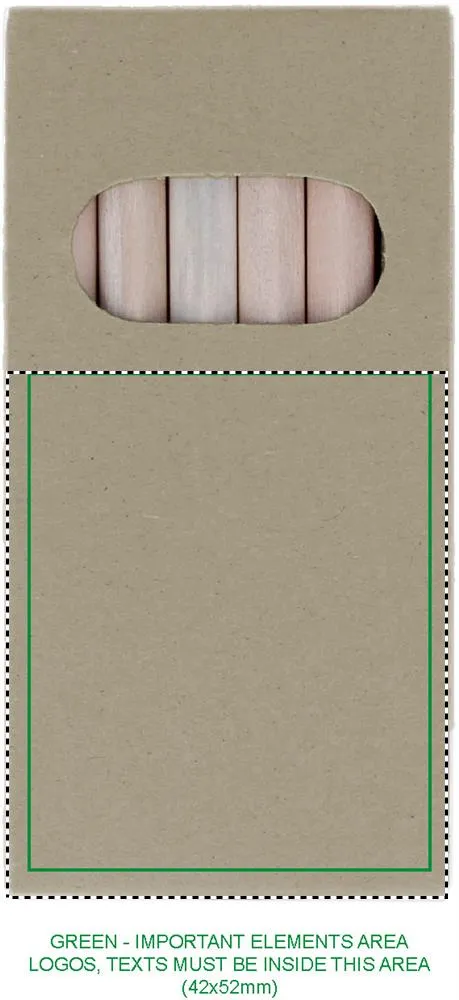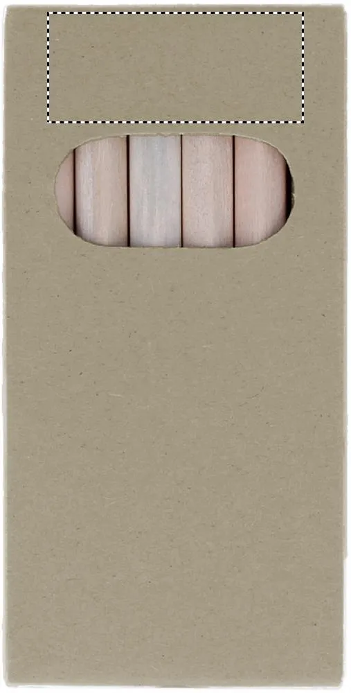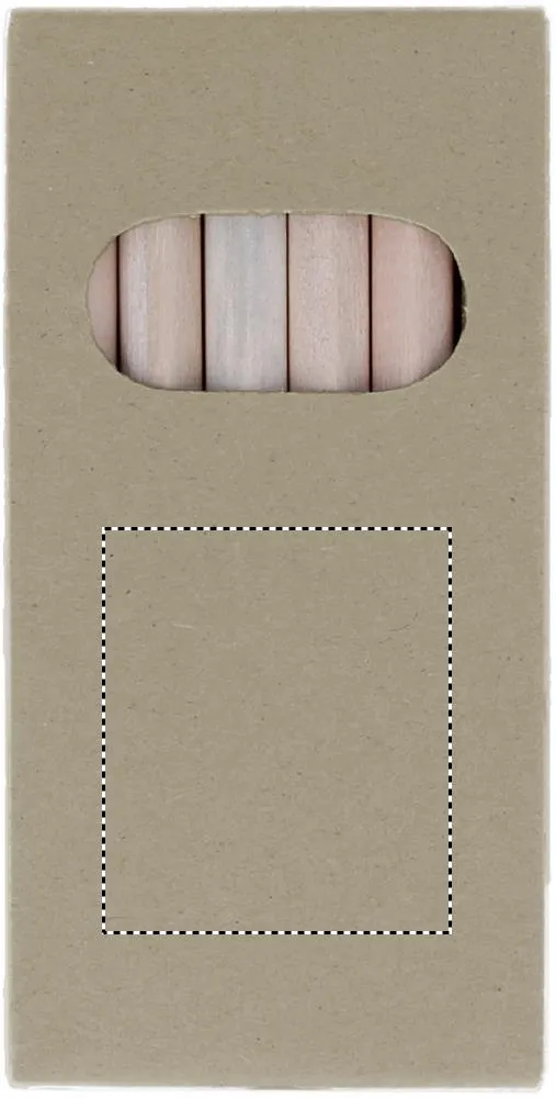 6 lápis de cor numa caixa de papel reciclado.6 Lápis de cor em caixa