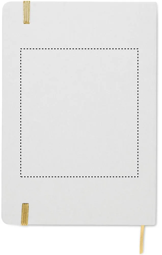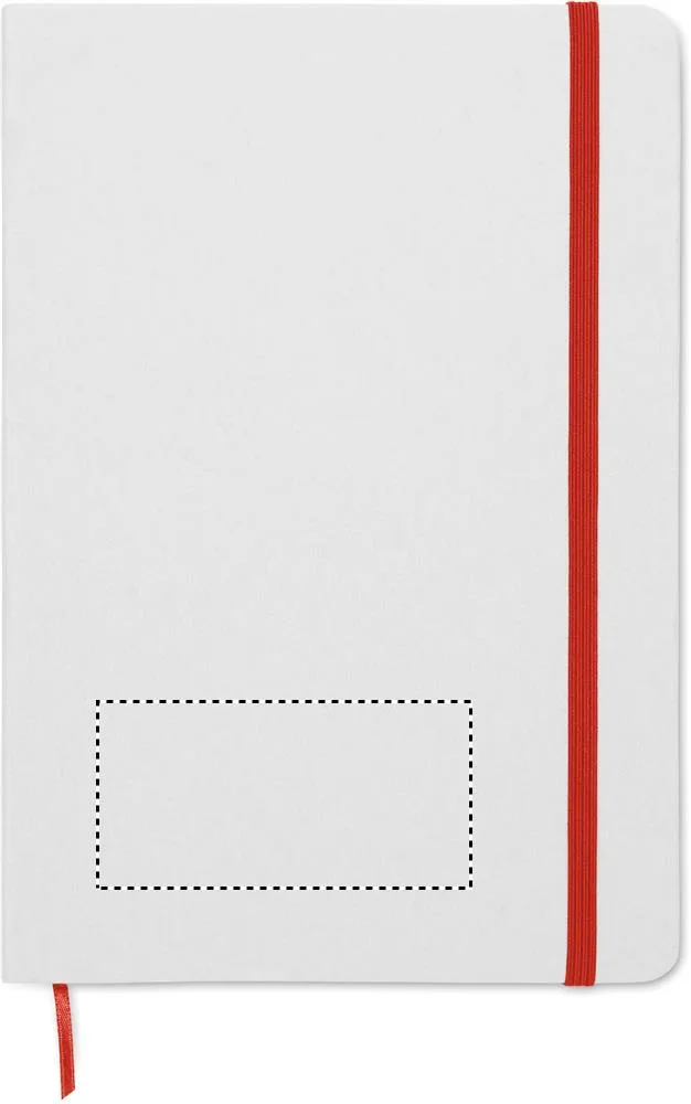 Bloco A5 com capa em cartão rígido reciclado. Capa branca. 160 páginas de papel reciclado pautado (80 folhas). Inclui elástico e fita de marcador correspondente. Se gravado a laser, a cor correspondente abaixo aparecerá na impressão.Bloco A5 com capa de papelão