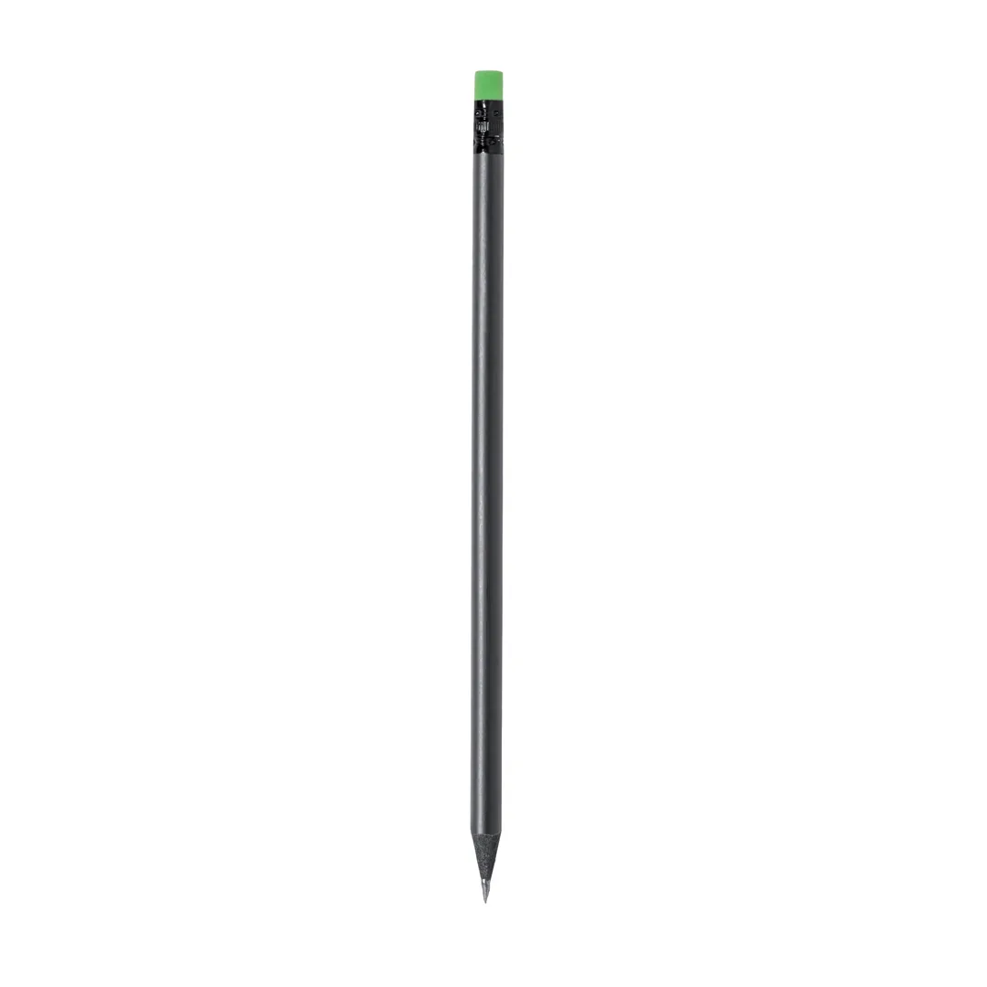 Elegante lápis de cor preto fabricado em madeira natural, com prática borracha e disponível em diversos cores. Com mina preta e ponta afiada.Madeira