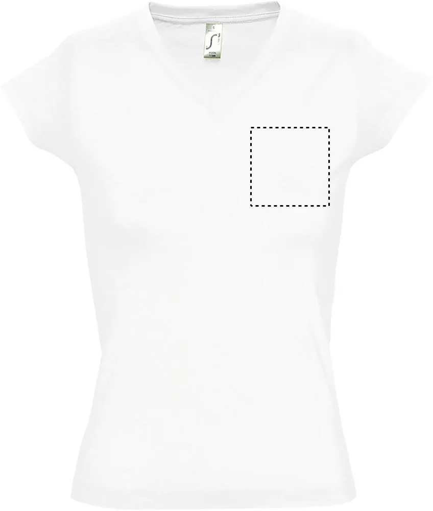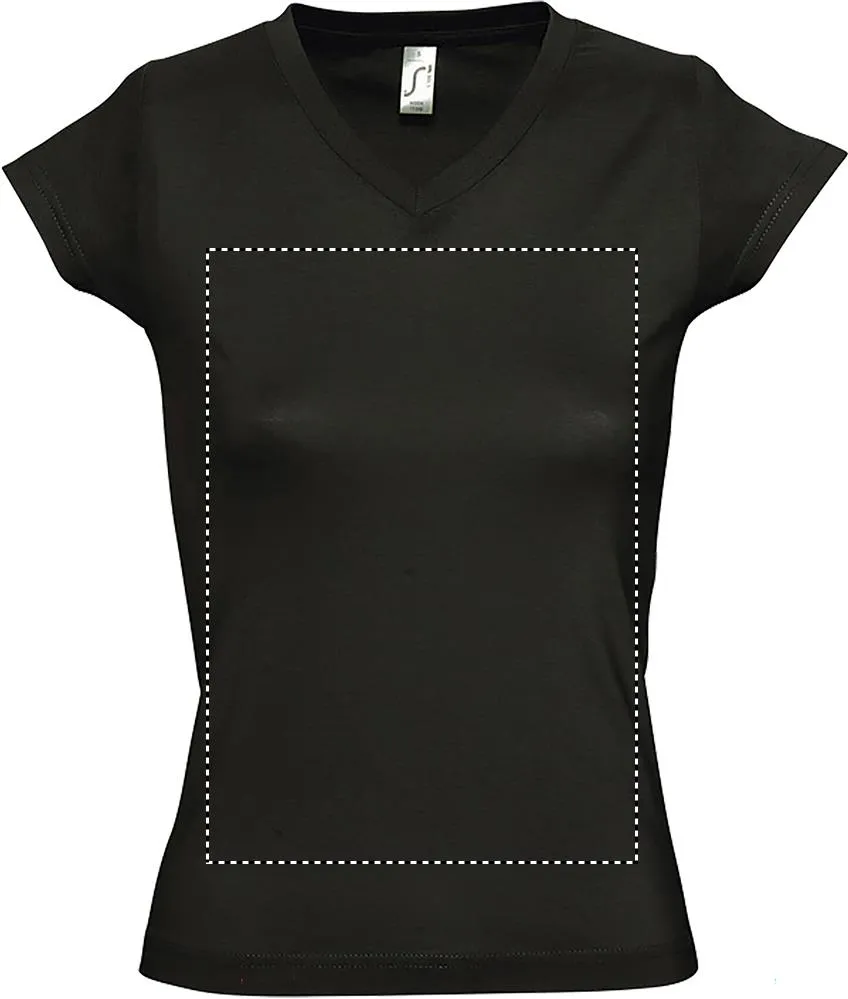SOL'S MOON T-shirt SENHORA 150g/m², T-shirt de referência com decote em V para senhora, slim fit, ideal para o mundo da moda, 100% algodão semi-penteado ringpun, costuras reforçadas na gola, mangas curtas, corte justo, ponto canelado decote em V com elastano, costuras lados.MOON T-SHIRT SENHORA 150g