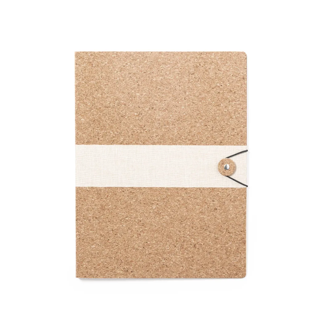 Ref: BEC8881MOPasta de linha nature com exterior em cortiça natural e faixa central de linho com acabamento cru. Fecho elástico.