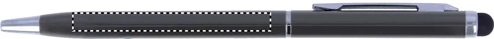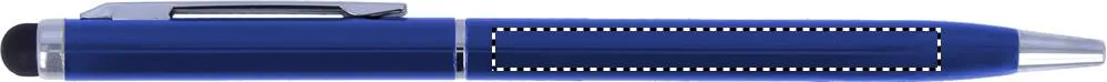 Esferográfica de ação rotativa em alumínio reciclado com caneta stylus e clipe cromado brilhante. Tinta azul.Esferográfica touch