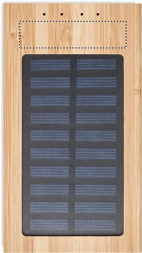 Banco de energia 4000 mAh em bambu e painel solar. Capacidade para uso em smartphone, 2 saídas USB DC5V/1A. Inclui luz indicadora e cabo USB com ficha micro usb. O bambu é um material natural, a cor do item, o tamanho e a impressão podem variar.Banco energia solar 4000 mAh