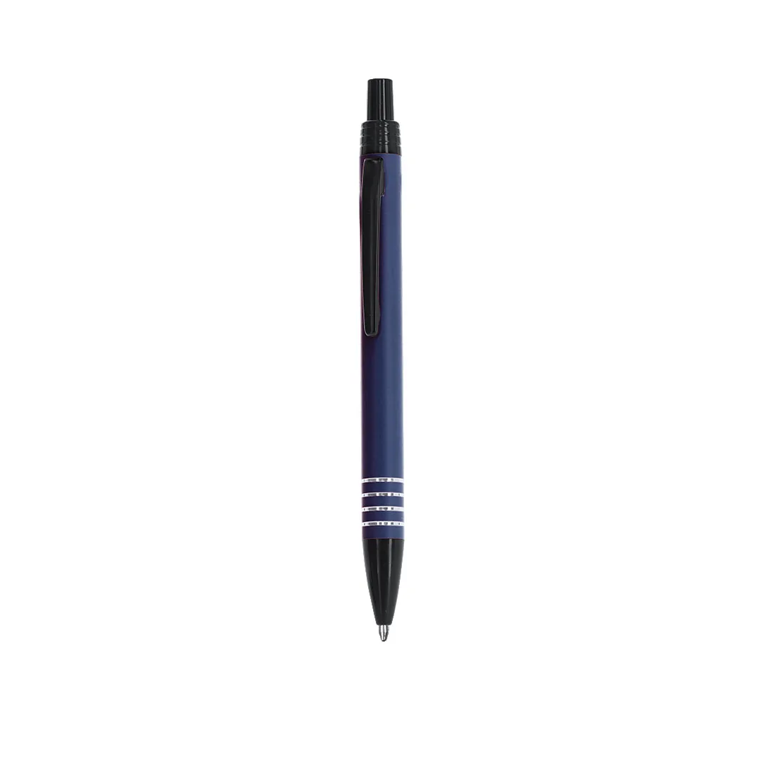 Ref: BEC90612MOCaneta fabricada em Alumínio Reciclado. De mecanismo de botão, com acessórios em cor negra e anéis em prata. De cartucho jumbo e em tinta azul. Distintivo de Alumínio Reciclado na parte superior.O alumínio reciclado é um material com possibilidades de reciclagem quase infinitas, sem perder suas propriedades originais e consumindo menos energia nesse processo.Certificação GRS (Global Recycled Standard / Padrão de Reciclagem Global), que garante a origem reciclada do material usado para fabricar o produto.
