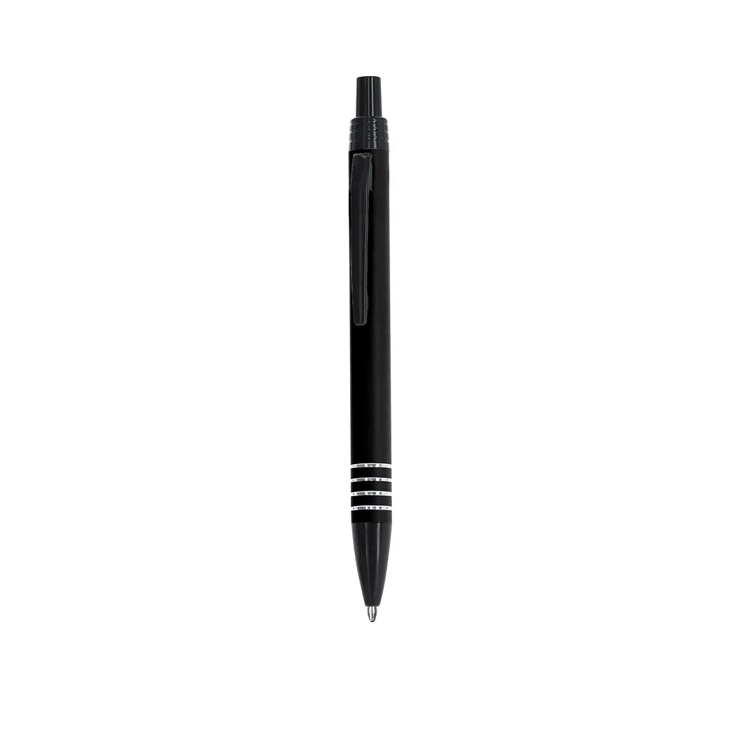 Caneta fabricada em Alumínio Reciclado. De mecanismo de botão, com acessórios em cor negra e anéis em prata. De cartucho jumbo e em tinta azul. Distintivo de Alumínio Reciclado na parte superior.O alumínio reciclado é um material com possibilidades de reciclagem quase infinitas, sem perder suas propriedades originais e consumindo menos energia nesse processo.Certificação GRS (Global Recycled Standard / Padrão de Reciclagem Global), que garante a origem reciclada do material usado para fabricar o produto.Alumínio RecicladoCarga Jumbo