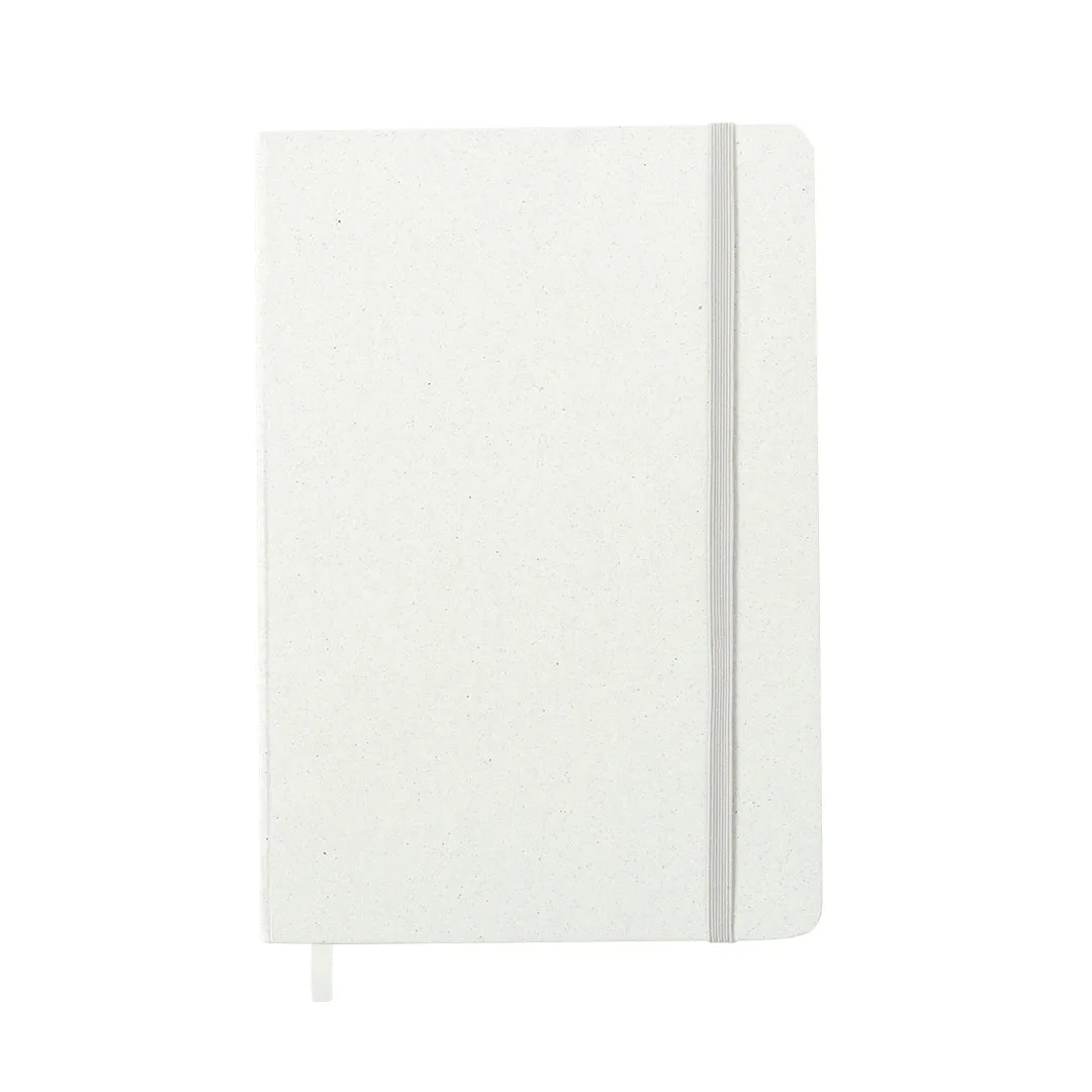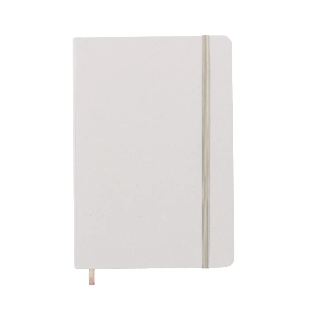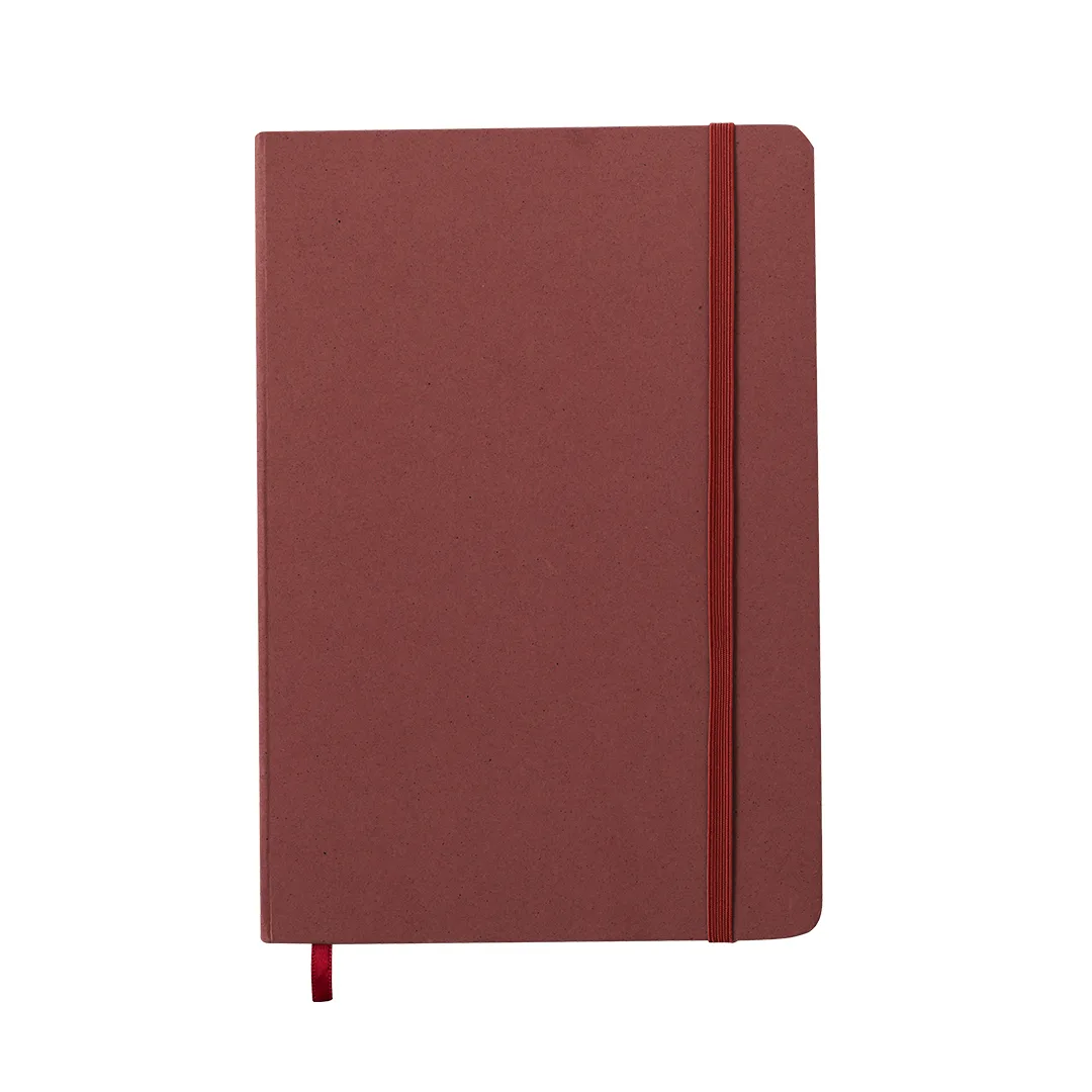 Bloco de notas A5 com capas duras elaborado a partir de frutas. Interior com 80 folhas pautadas, com marca páginas e banda elástica a condizer. Disponível em variadas cores de acabamento kraft. Inclui logotipo Papel de Fruta na contra capa. Apresentado numa bolsa individual reciclada.Mediante a mistura de resíduos e desperdícios procedentes da indústria agroalimentar, misturas com outros materiales reciclados, obtém-se um papel 100% sustentável: o papel de frutas. Promovendo o seu uso contribui-se para a reutilização de materiais e para um maior compromisso ambiental.Papel de Fruta/ Cartão RecicladoCapa Rígida. 80 Folhas