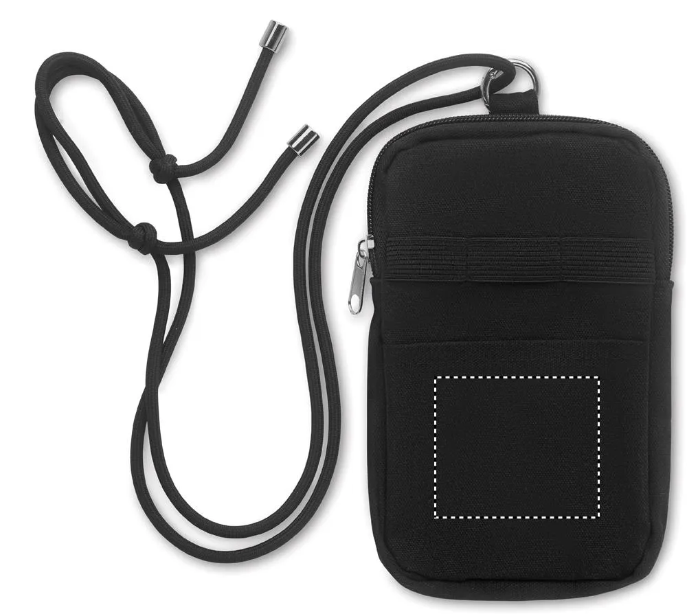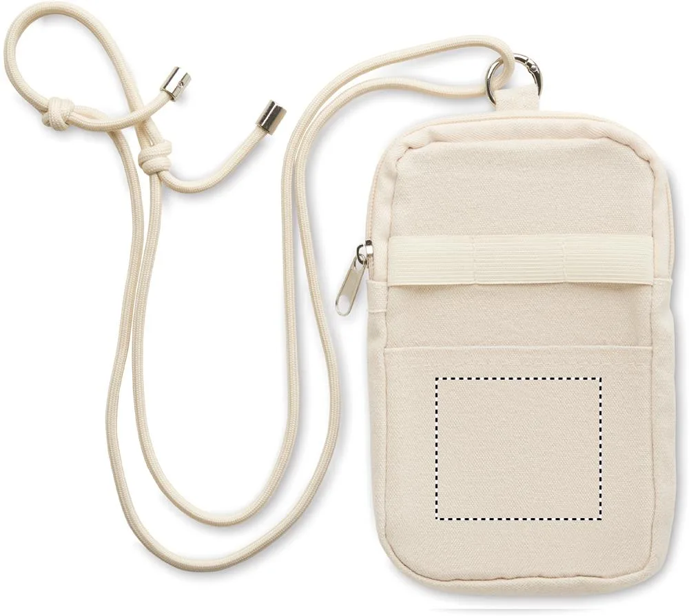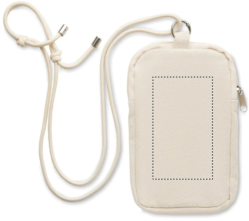 Saco para smartphone de corpo cruzado em algodão reciclado com cordão ajustável em poliéster RPET e bolso aberto na frente. 280 gr/m².Bolsa para smartphone