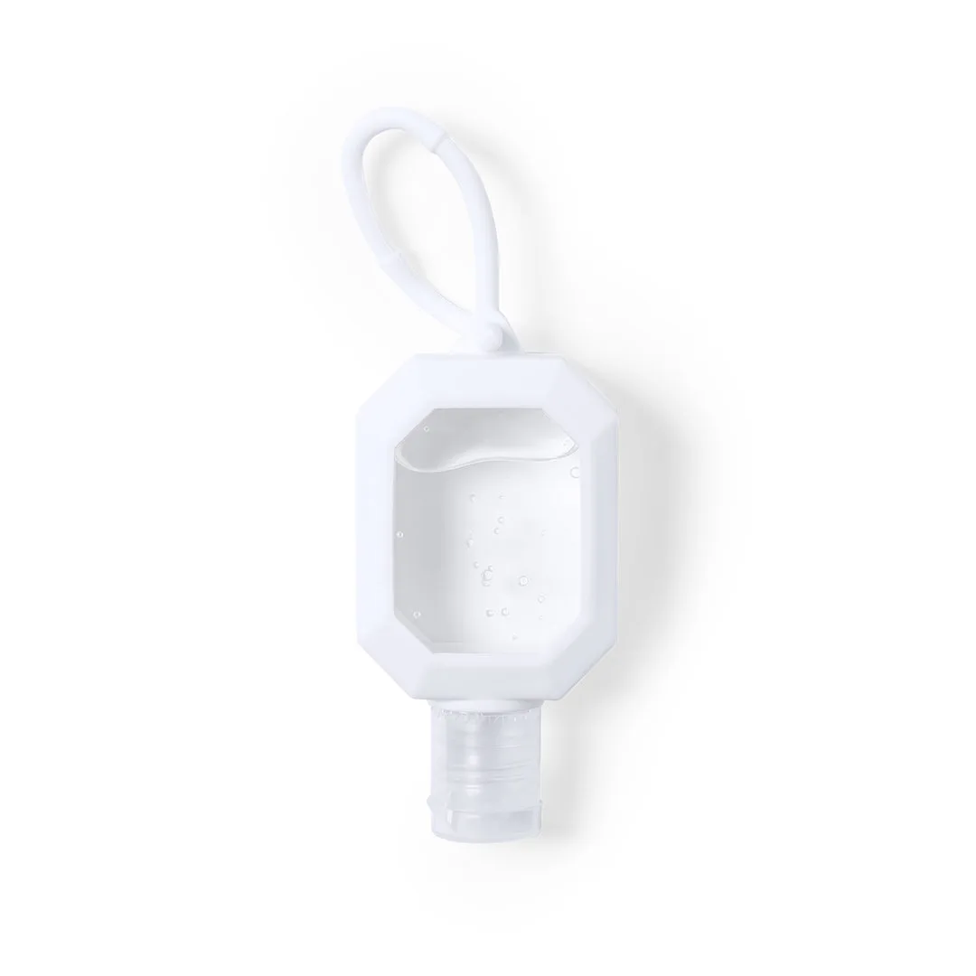 Gel hidroalcoólico para higiene e limpeza da pele em frasco recarregável de 30 ml, com extrato balsâmico de Aloe Vera. Corpo em silicone macio de cor branca, com doseador, tampa de segurança e cordão no mesmo material para transporte/ fixação. Solução com 65% de conteúdo álcool.Certificação 94/62/EC disponível.Artigo com certificação GMP (Good Manufaturing Practices / Correct Manufacturing Standards) que garante o cumprimento de rigorosas medidas de controle para obter um produto seguro e de qualidade.Silicone30 ml. Solução para a limpeza da pele