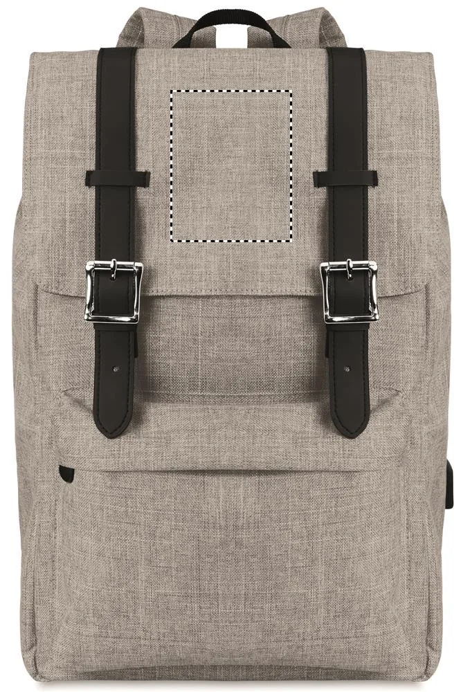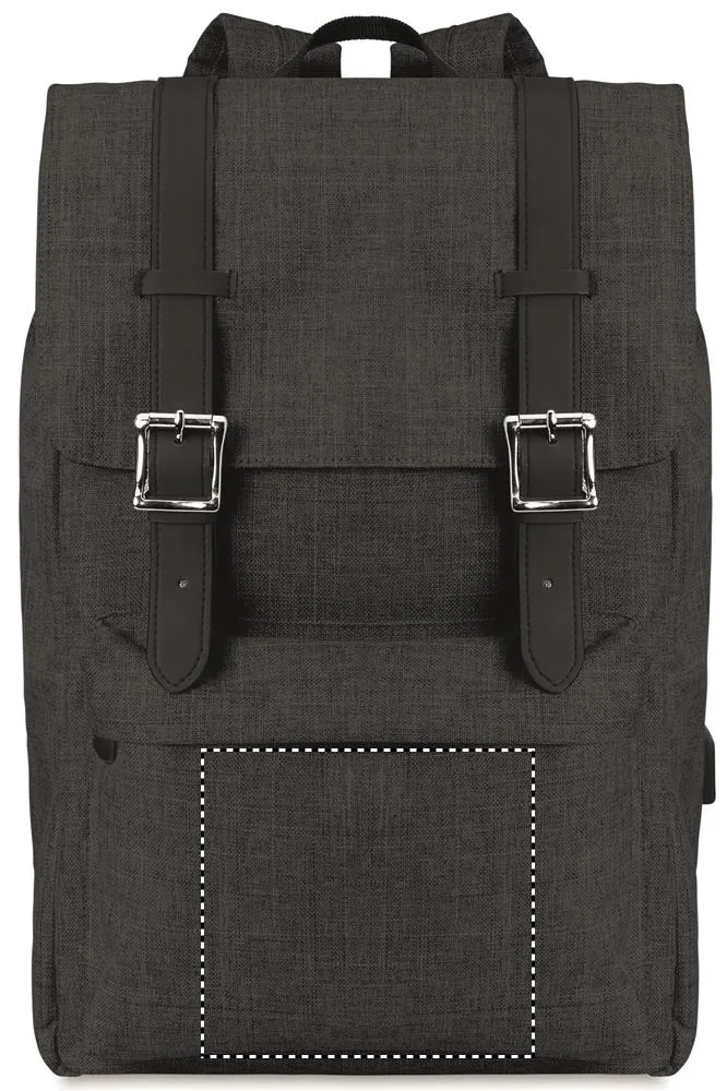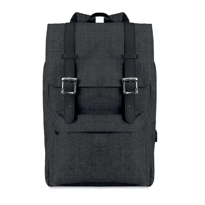 Mochila para portátil em poliéster 600D de duas cores com alças acolchadas, incluindo um compartimento interno principal para portátil de 15 polegadas e um cabo de carregamento USB. Inclui fecho por mola magnética e um compartimento frontal com Zipper.Mochila em poliéster 600D