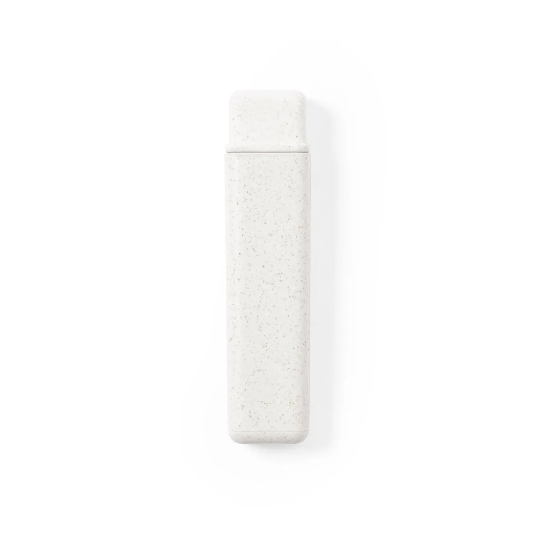 Ref: BEC9361MOEscova de dentes dobrável e da linha nature. Fabricada em palha de trigo, para assim fomentar a utilização de matérias primas naturais e reduzir as emissões contaminantes.
