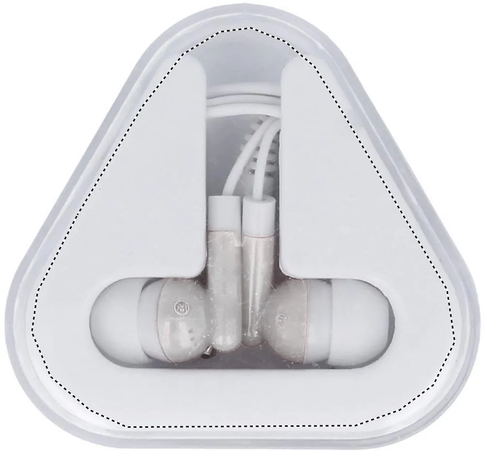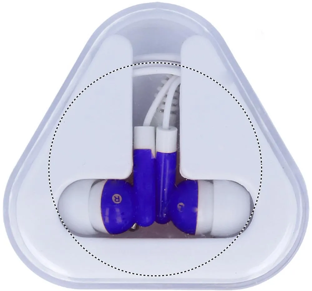 Auscultadores em PVC, em base triangular em PS. Comprimento do cabo 120 cm.Auriculares em embalagem de PS