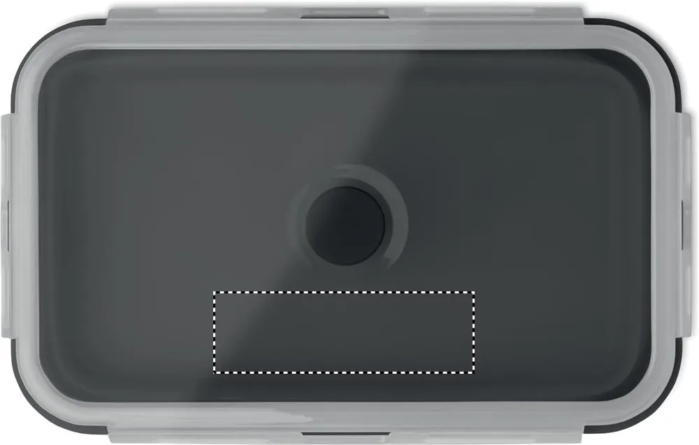 Lancheira dobrável de silicone com tampa em PP e válvula de silicone. Capacidade: 1200 ml.Lancheira de silicone dobrável