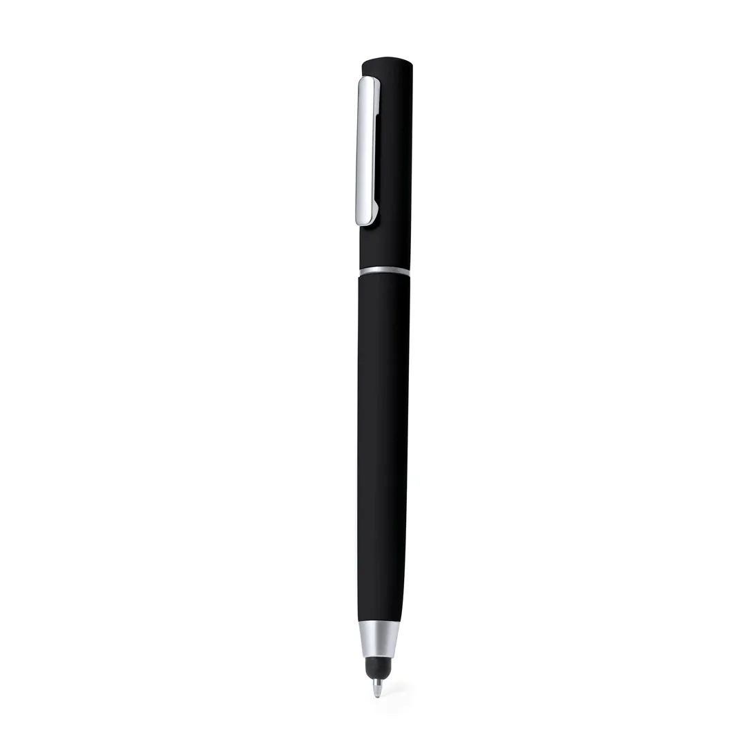 Ref: BEC94702MOPonteiro esferográfico prático com mecanismo giratório, com acessórios de limpeza alojados na parte superior. Inclui escova e ponta de metal protegidas por tampa. Com grampo de metal e em tinta azul. Disponível em várias cores e apresentado individualmente em caixa de design kraft.