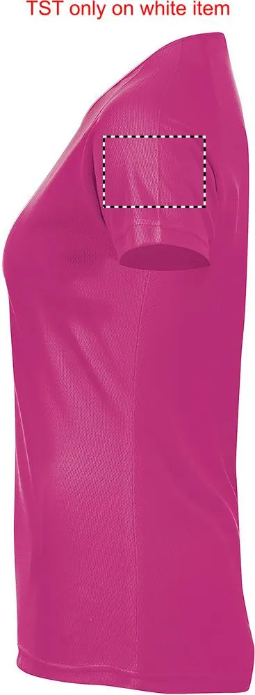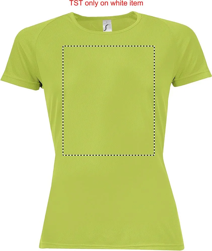 SOL'S SPORTY T-Shirt SENHORA 140g / m². O seu material respirável, o seu corte com mangas raglan e as suas costuras planas tornam-no o produto ideal para a prática de desporto. Grande variedade de tamanhos e cores, também inclui tons fluorescentes, 100% poliéster respirável, debrum no pescoço, mangas raglan, costas mais compridas. Impressão em sublimação apenas dispoível para artigos de cor branca.SPORTY T-SHIRT SENHORA 140g