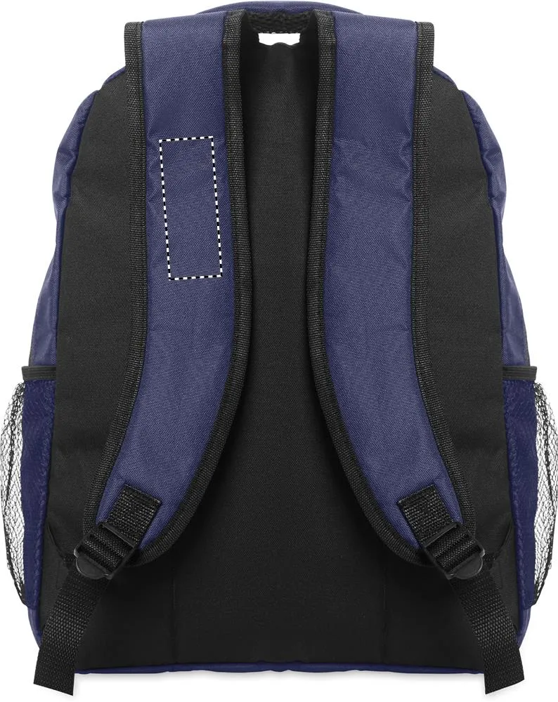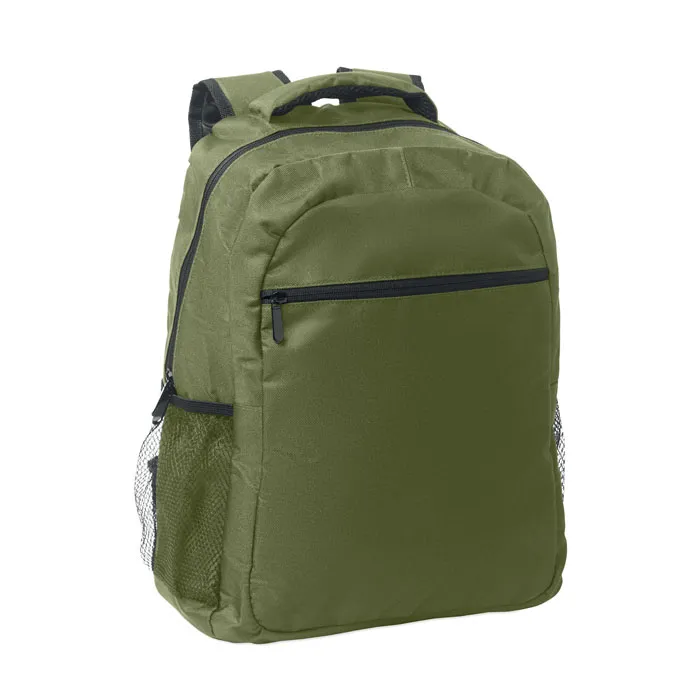 Mochila para computador portátil de 15 polegadas em poliéster 600D RPET com compartimento para computador portátil almofadado no interior, bolsos de rede em ambos os lados e bolso frontal com fecho de correr.Mochila para portátil de 15"