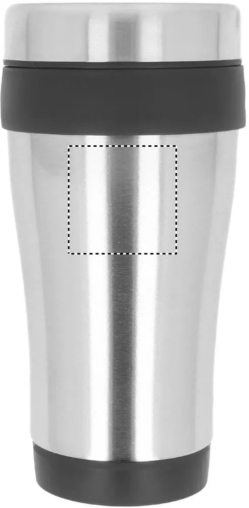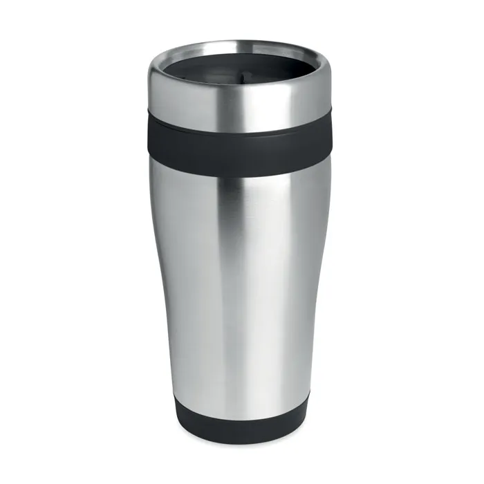 Copo de viagem em aço inoxidável de parede dupla com interior PP e tampa. Capacidade: 455 ml.Copo de aço inoxidável 455 ml