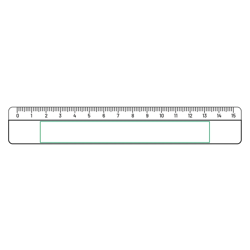 Régua com escala em relevo 15 cm. Personalizável, ideal para uso escolar ou de escritório.Régua com escala em relevo 15cm