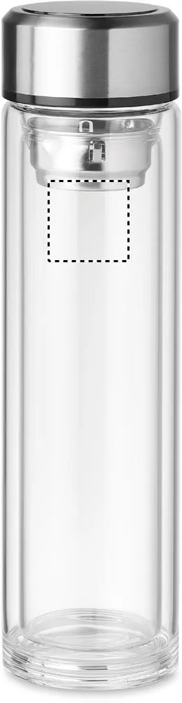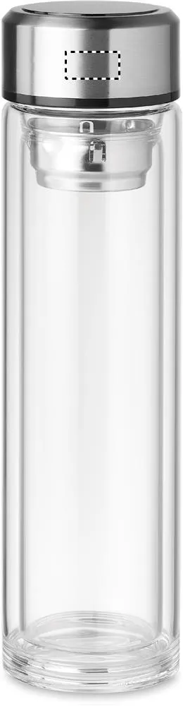 Garrafa de vidro de borossilicato com parede dupla. Possui um termómetro de toque LED incorporado na parte superior da tampa e um infusor de chá no seu interior. Inclui 1 pilha substituível CR2032. À prova de fugas. Capacidade: 390 ml. Anti vazamento.Garrafa com termómetro táctil