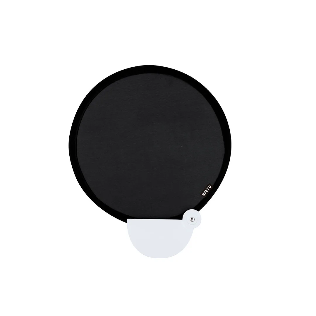 Leque dobrável em RPET. Fácil de transportar graças ao sistema de dobragem, inclui etiqueta distintiva RPET.O material RPET é feito a partir de plástico reciclado, promovendo a reutilização de resíduos plásticos e ajudando na sustentabilidade do planeta.Poliéster RPETDobrável