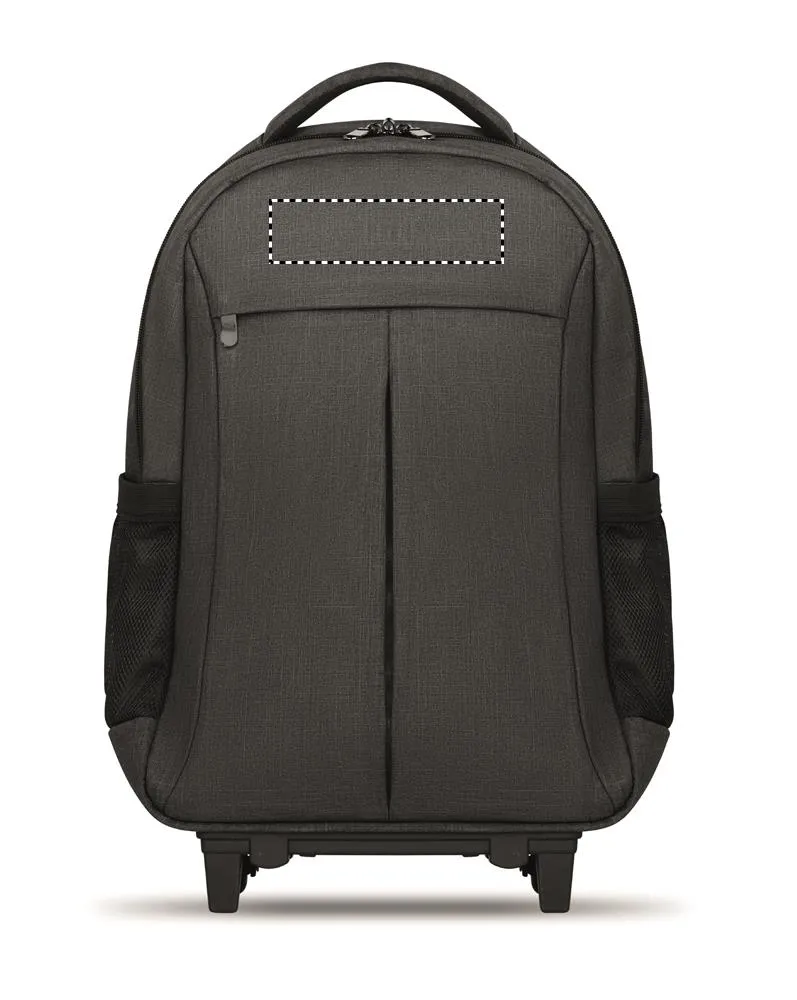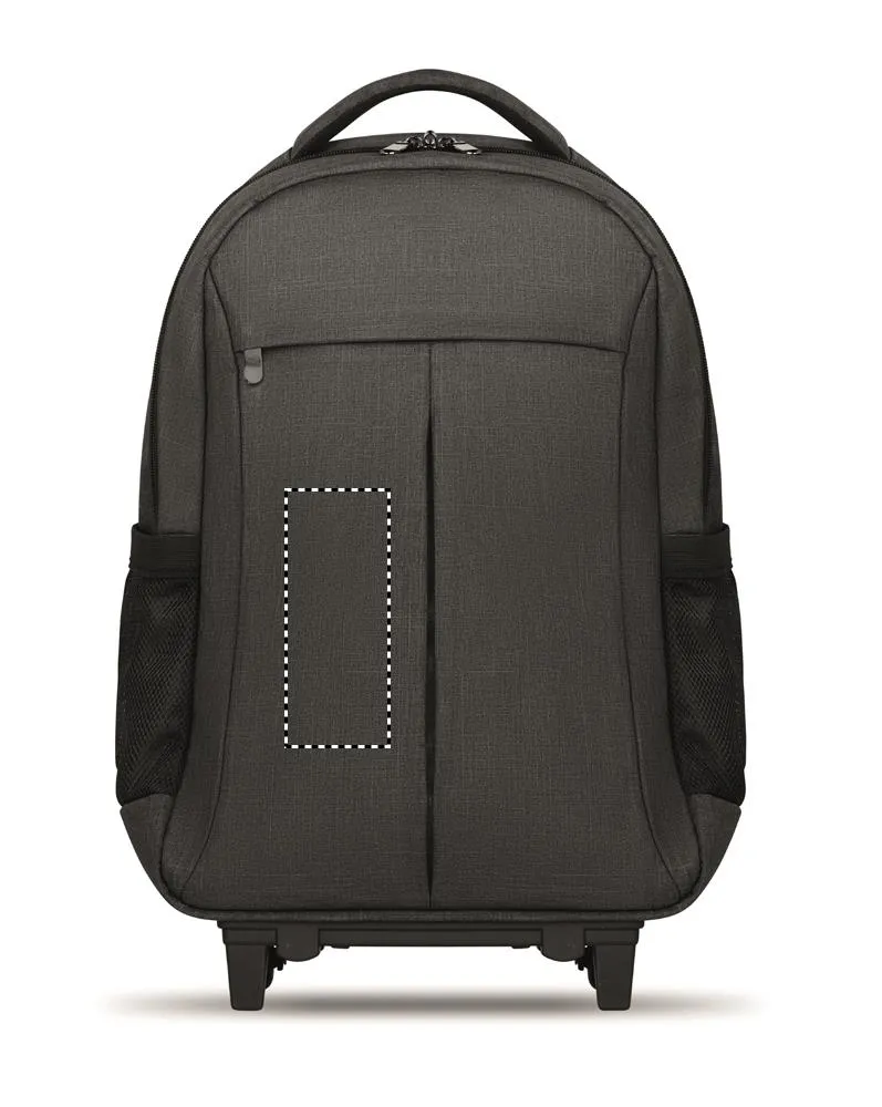 Mochila trolley em 360D 2 tons polyester. Inclui 1 compartimento interno para laptops de 15 polegadas e compartimento principal com zipper.Inclui compartimento para tablet.Trolley Mochila