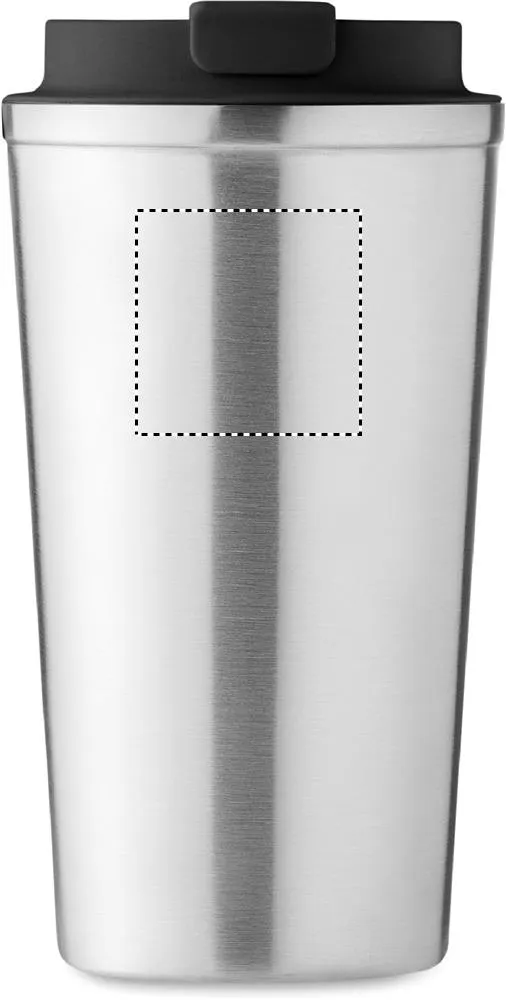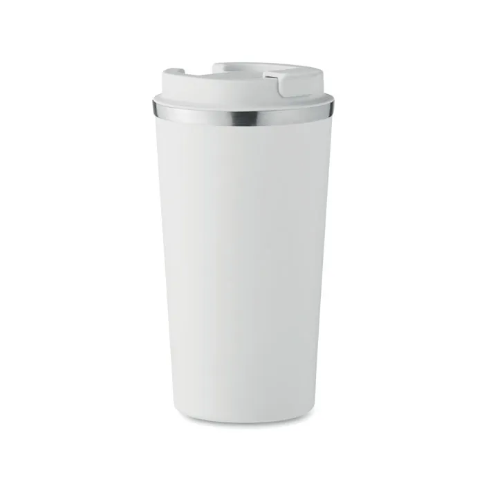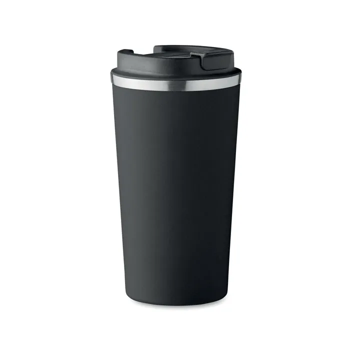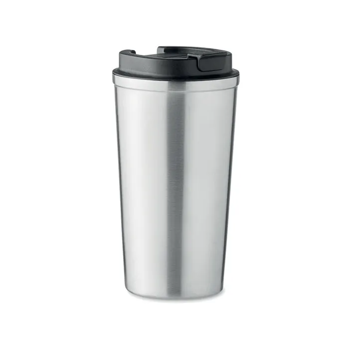 Copo de parede dupla em aço inoxidável reciclado (90% aço inoxidável reciclado e 10% aço inoxidável) com tampa em PP. Capacidade: 510 ml. Sem fugas.Caneca dupla 510 ml