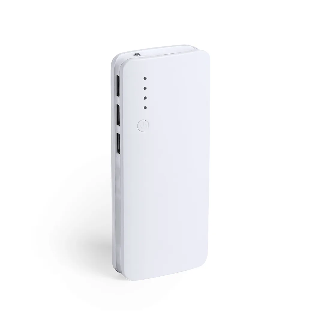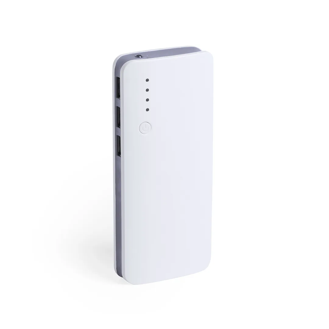 Ref: BEC9775MOPower Bank com grande capacidade de carga -10.000 mAh-. Com saída USB tripla para carregar até 3 dispositivos de forma simultânea, ledes indicadores do estado de carregamento, design curvo com corpo na cor branca e laterais de cores vivas, com ampla superfície de impressão. Apresentado numa atrativa caixa de design.As capacidades indicadas em todos os nossos power banks são reais, incorporando todos eles baterias de grau A e não recicladas, com uma vida útil de pelo menos 500 ciclos de carga e de acordo com as normas CE. Além disso, são fabricadas de acordo com as normas RoHS e em conformidade com os seguintes requisitos de segurança: Sistema de proteção contra sobrecarga do power bank. Sistema de proteção contra descarga completa para uma maior durabilidade do power bank. Sistema de bloqueio para evitar curto-circuitos. Sistema de transferência de carga constante, de acordo com a capacidade do dispositivo de destino.