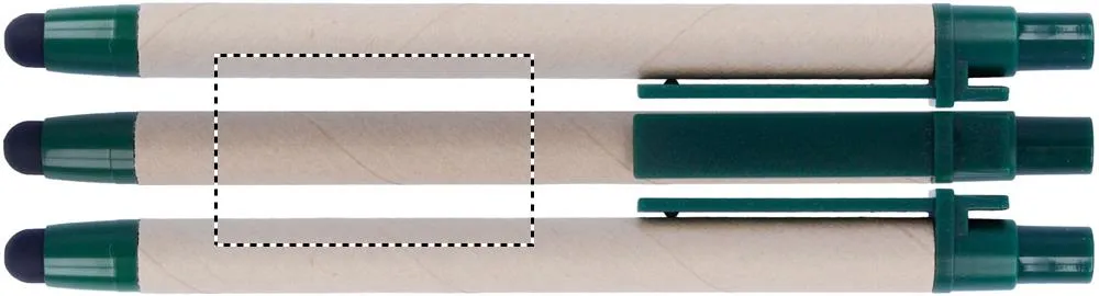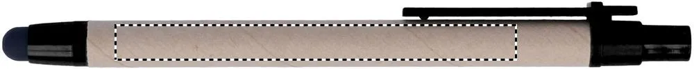 Caneta automática feita em cartão reciclado, ponta e clip em ABS. Escrita azul e ponta para écrans tácteis.Caneta táctil cartão reciclado