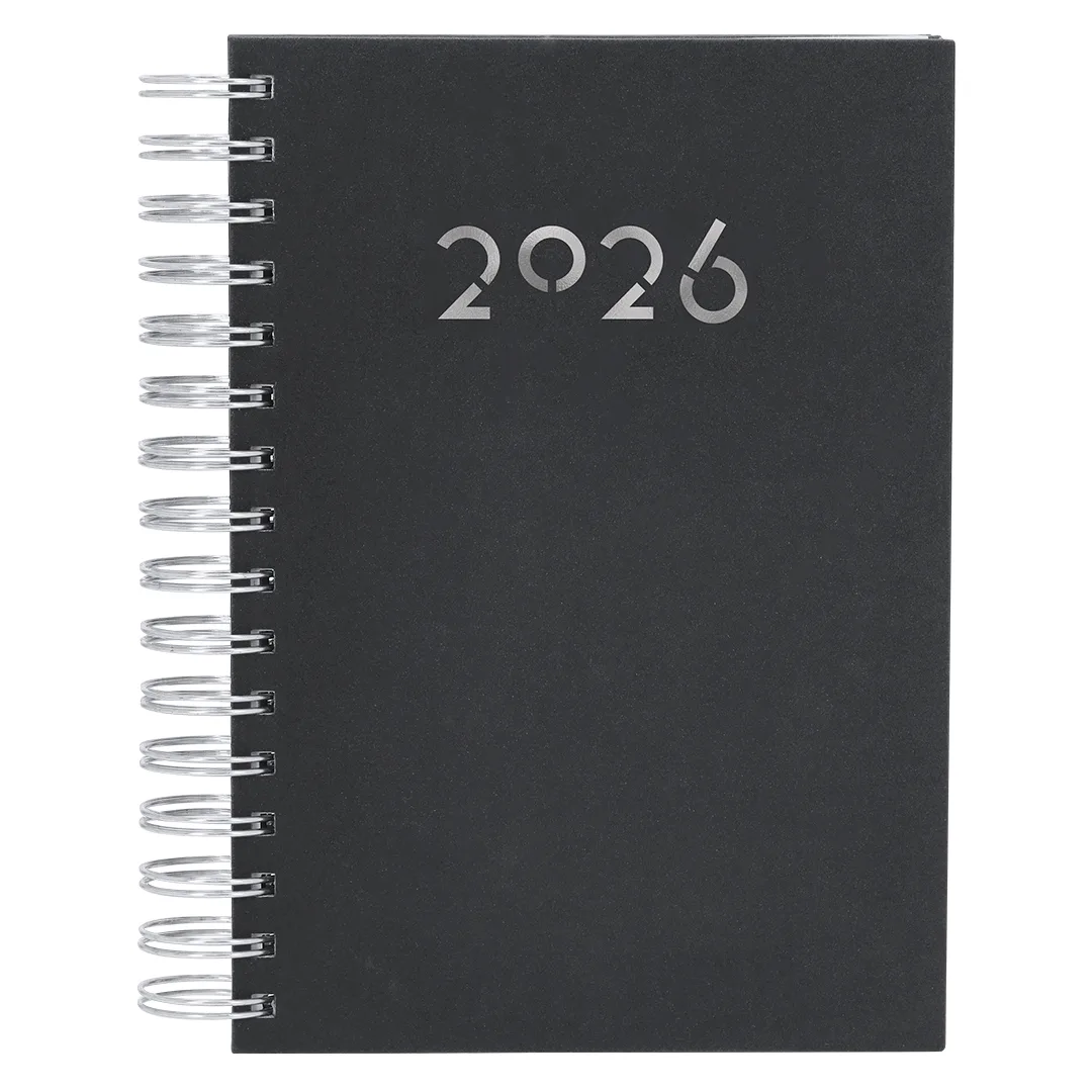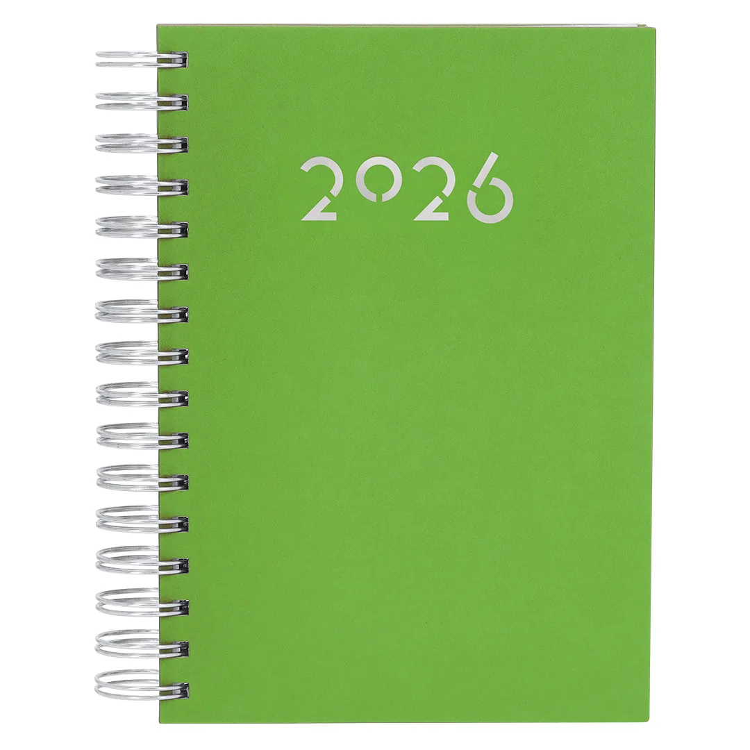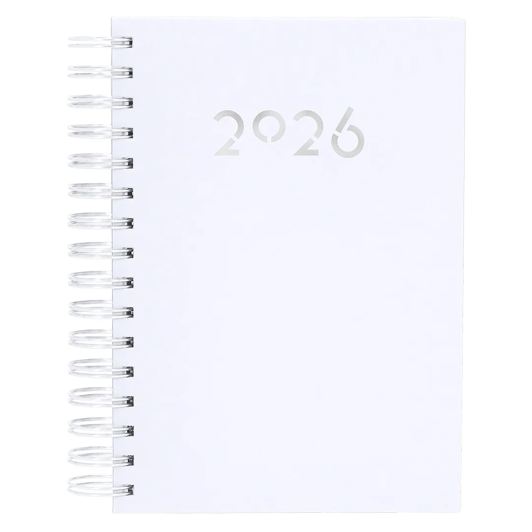 Diário tamanho A5 com anel de fichário em couro PU macio e resistente, com capas duras. Inclui uma caixa de apresentação em kraft.Design de página por dia e páginas com canto recortado. Em 2 idiomas: espanhol e inglês.PUPágina Dia. Caixa de Apresentação Incluída