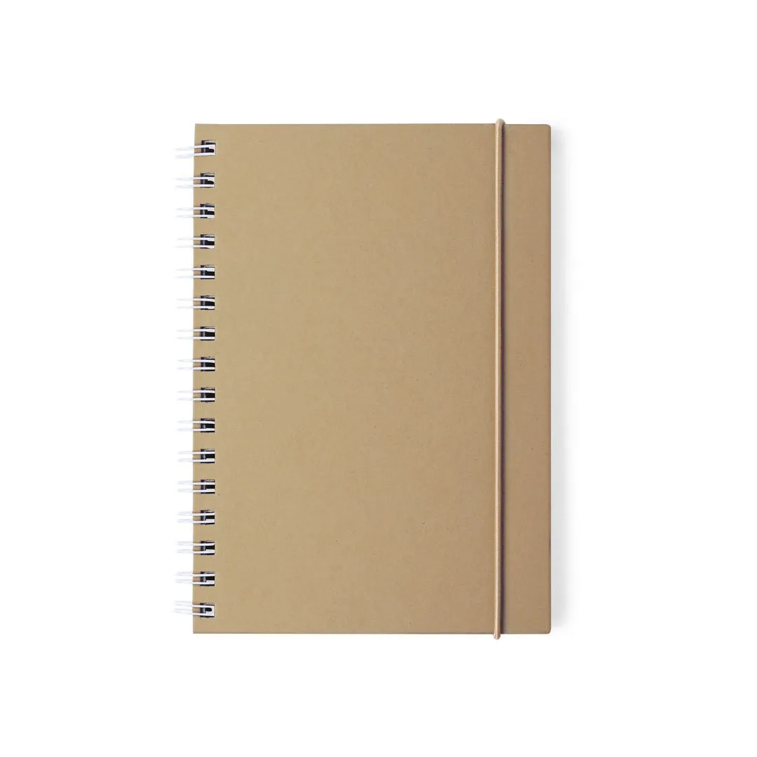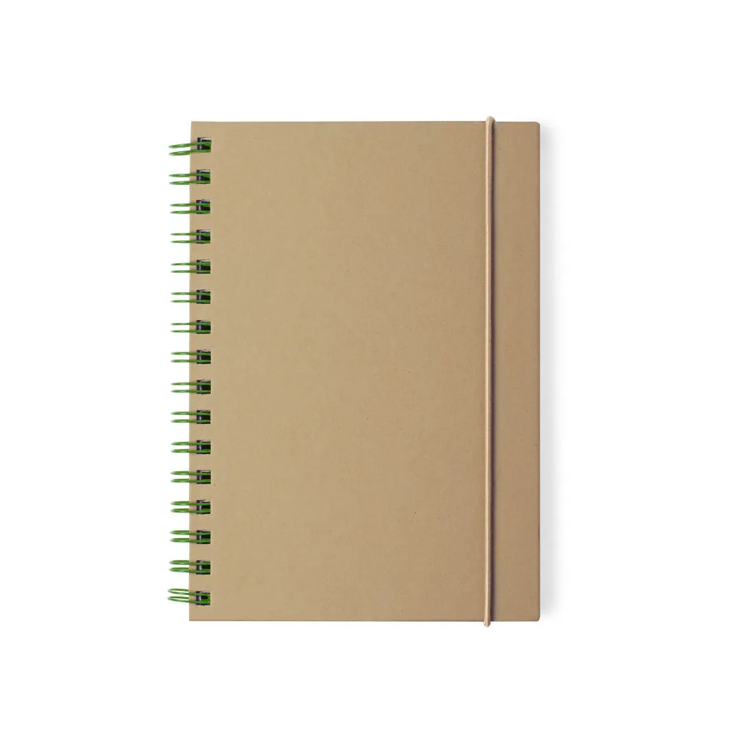 Caderno de anéis coloridos na linha da natureza. Tampas duras em papelão reciclado e faixa elástica em cores naturais. Com 80 folhas em layout listrado e design ecológico.Cartão RecicladoCapa Rígida. 80 Folhas