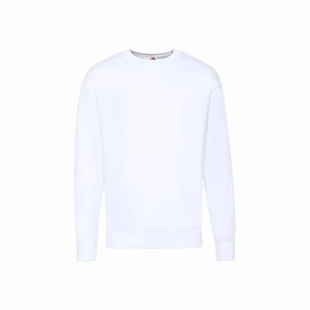 Sweatshirt para criança Classic Set-In Sweat da Fruit Of The Loom. Fabricada numa combinação de materiais 80% algodão + 20% poliéster de 280g/m2. Com plaqueta de ombro a ombro em ponto liso e pescoço, cintura e punhos em algodão/ LYCRA®. Com etiqueta facilmente removível e disponível numa variada gama de cores. Tamanhos 3-4, 5-6, 7-8, 9-11, 12-13, 14-15.80% Algodão/ 20% Poliéster 280 g/ m2